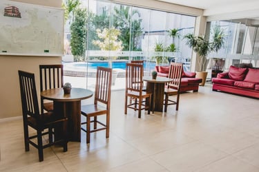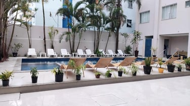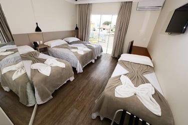 El Hotel Das Nações cuenta con pileta, 80 habitaciones, equipadas con aire acondicionado, frigo bar, caja fuerte, amplios ventanales y con abundante luz natural. Tienen capacidad para hasta 6 personas, tienen tv por cable y servicio de blanco.